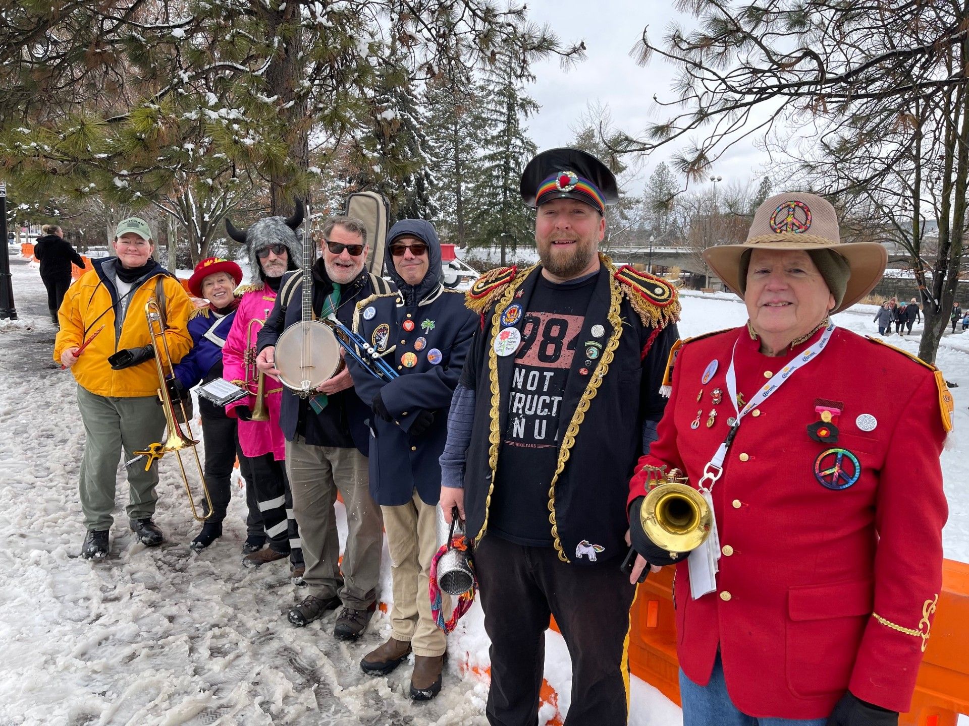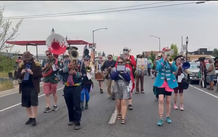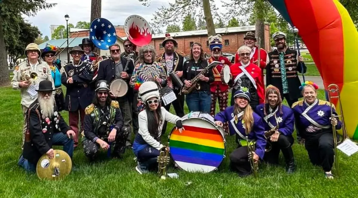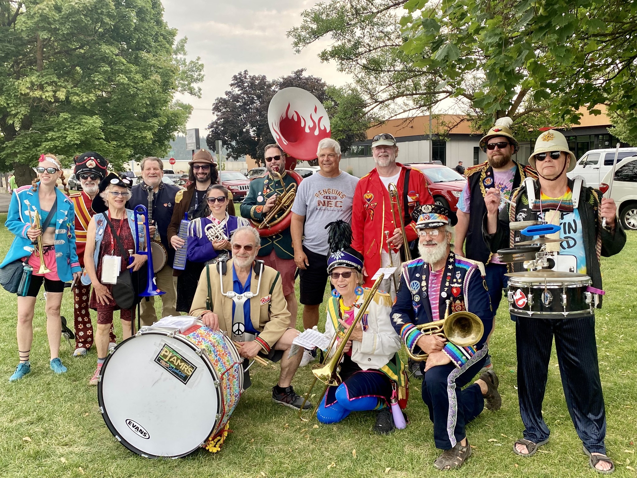 A community marching band, the P-Jammers, or PJAMRS (Peace and Justice Activist Musical Rascals of Spokane) are part of the international HONK! movement (See honkfest.org for more info). As such, membership is open to musicians of all levels and people who want to find a positive way to plug in with an emphasis on fun and doing the right thing. The PJAMRS are a multiple award winning (1st place in Southeast Spokane County Fair, 1st Place at Bloomsday 2024), and official Bloomsday band, that play at public celebrations, marches and rallies, or just for the heck of it. If you are interested in joining, just reach out to us on our Facebook page!