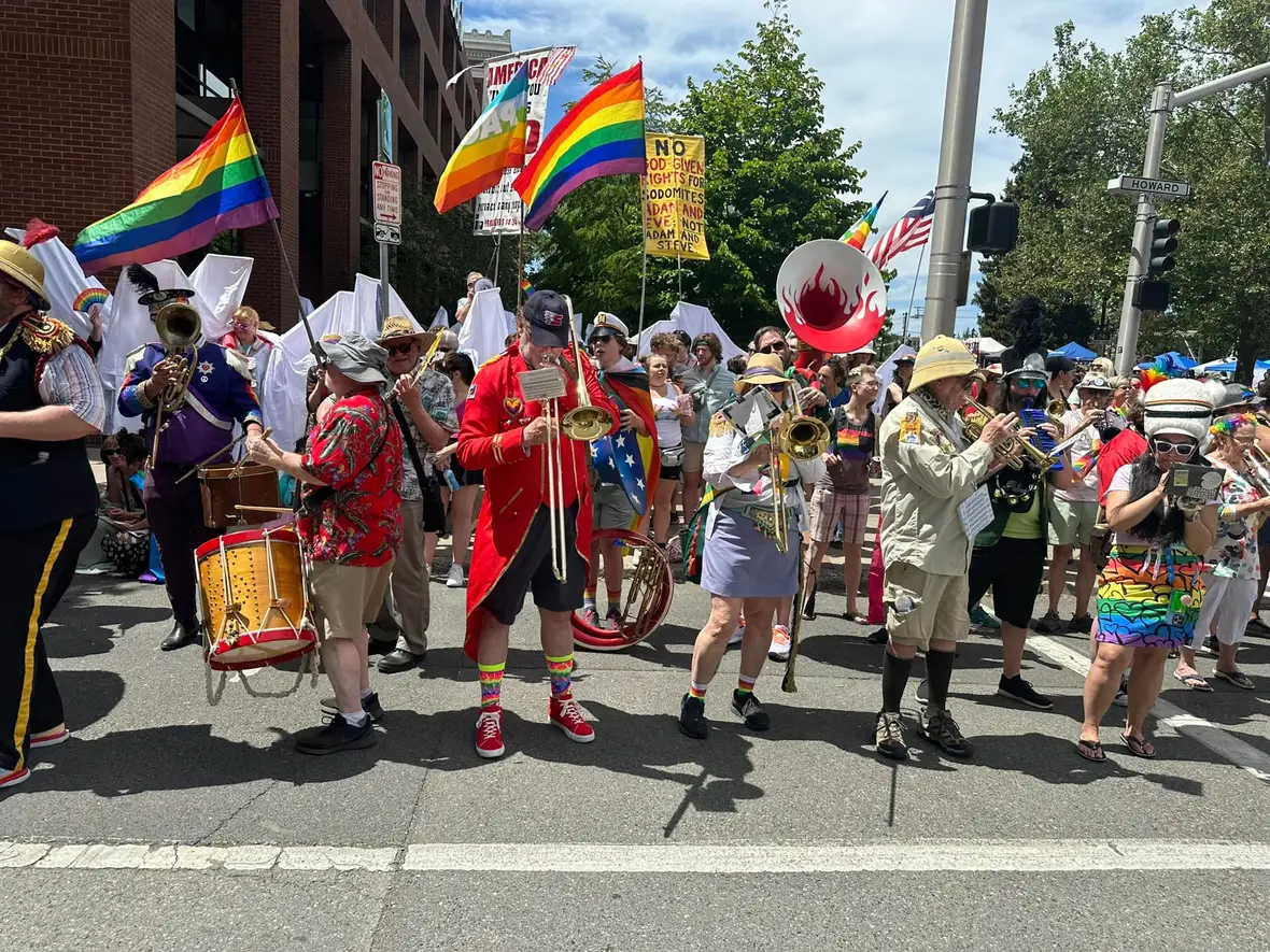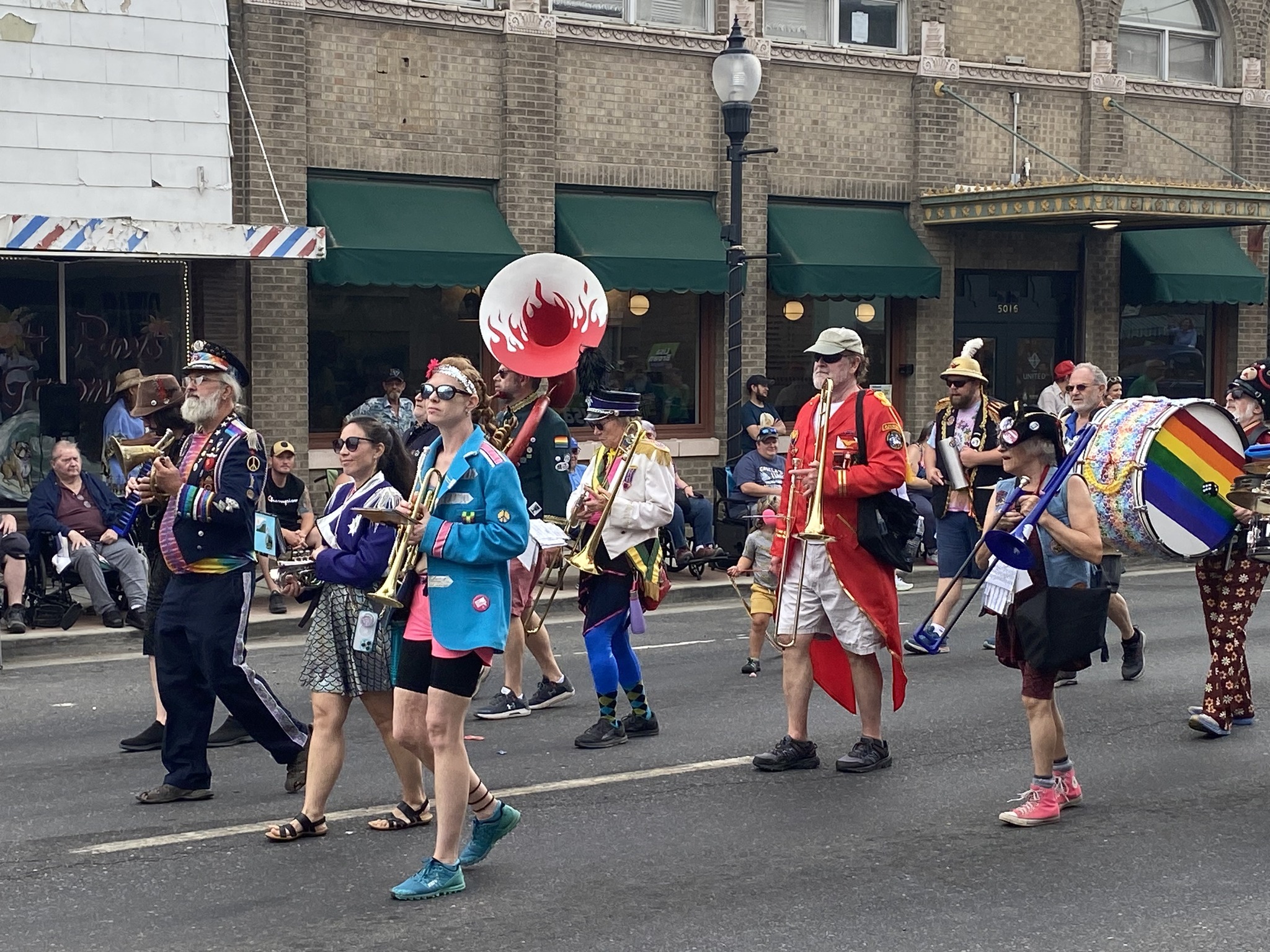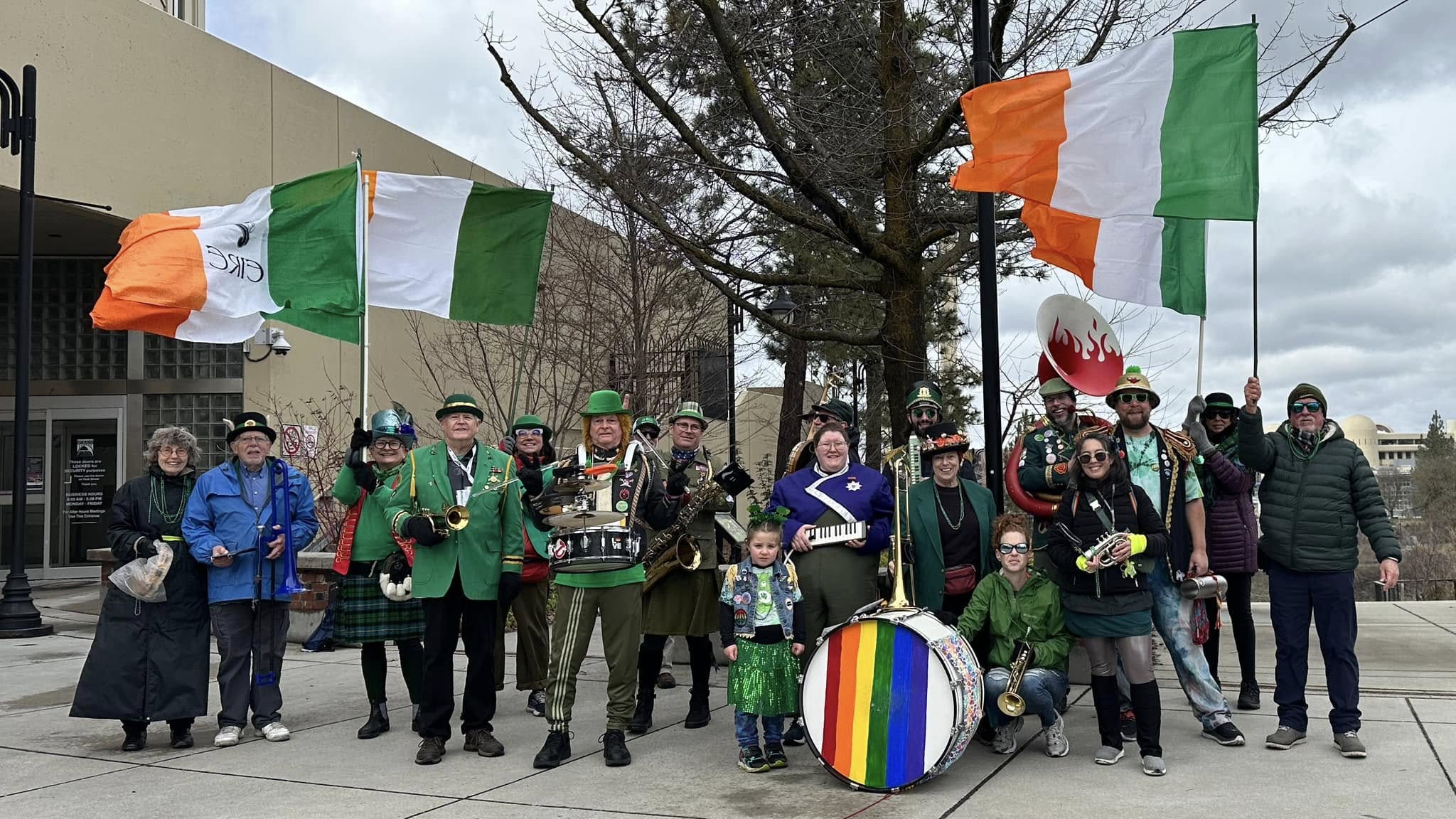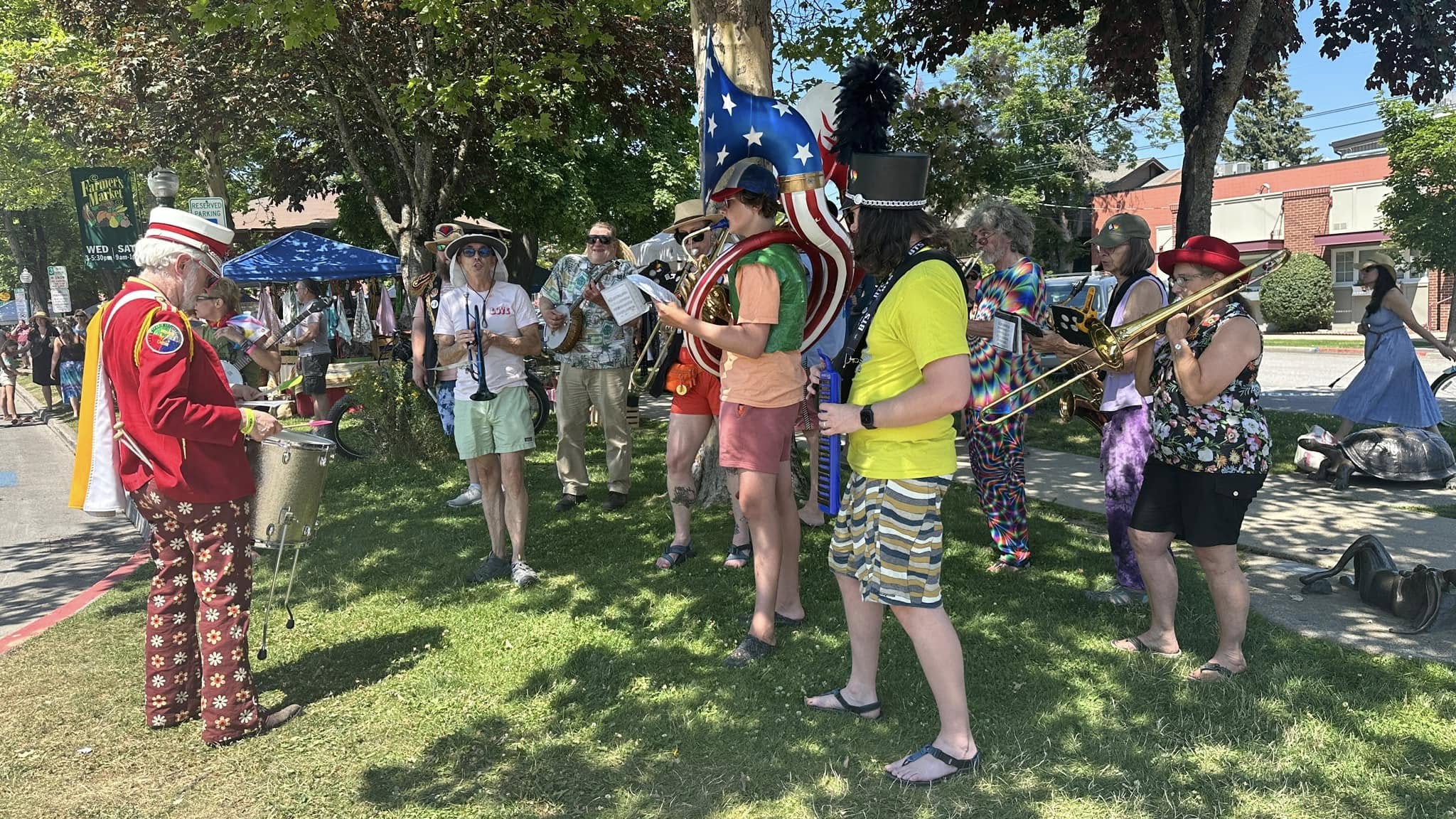 A community marching band, the P-Jammers, or PJAMRS (Peace and Justice Activist Musical Rascals of Spokane) are part of the international HONK! movement (See honkfest.org for more info). As such, membership is open to musicians of all levels and people who want to find a positive way to plug in with an emphasis on fun and doing the right thing. The PJAMRS are a multiple award winning (1st place in Southeast Spokane County Fair, 1st Place at Bloomsday 2024), and official Bloomsday band, that play at public celebrations, marches and rallies, or just for the heck of it. If you are interested in joining, just reach out to us on our Facebook page!