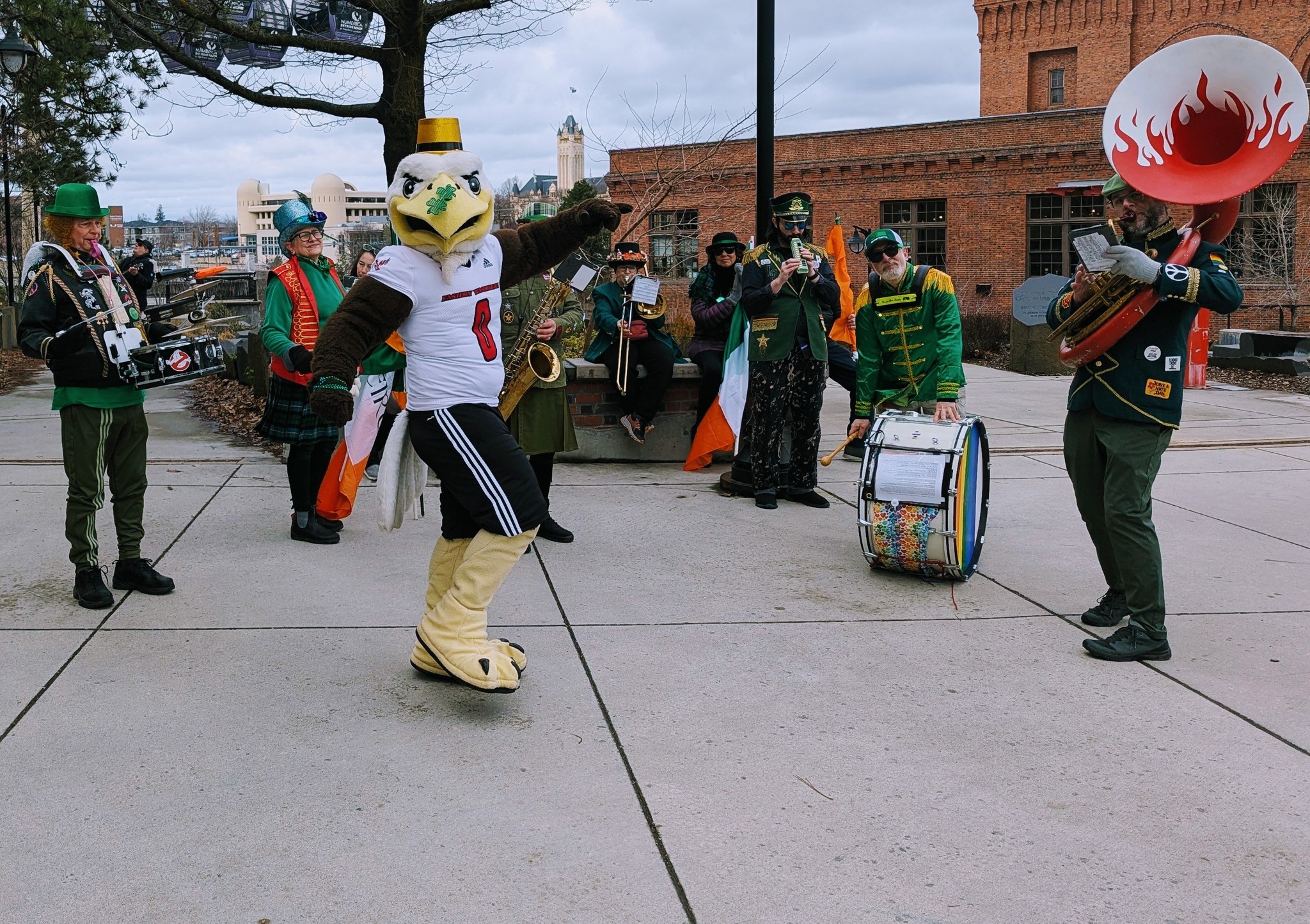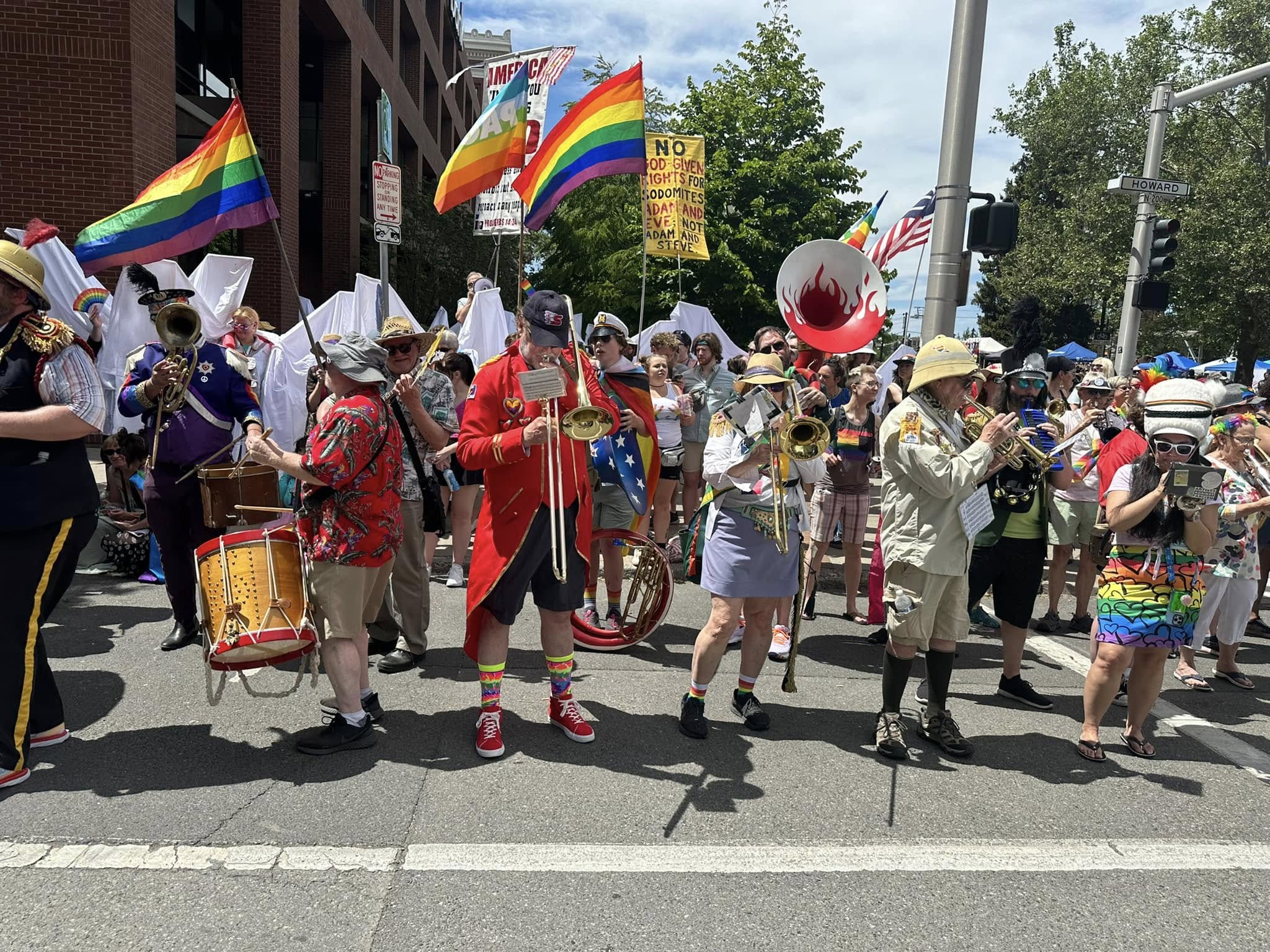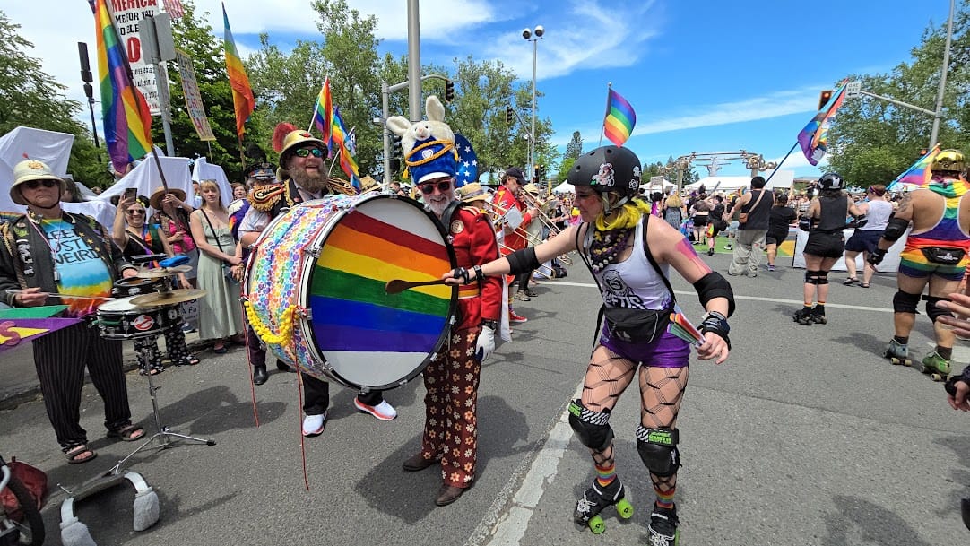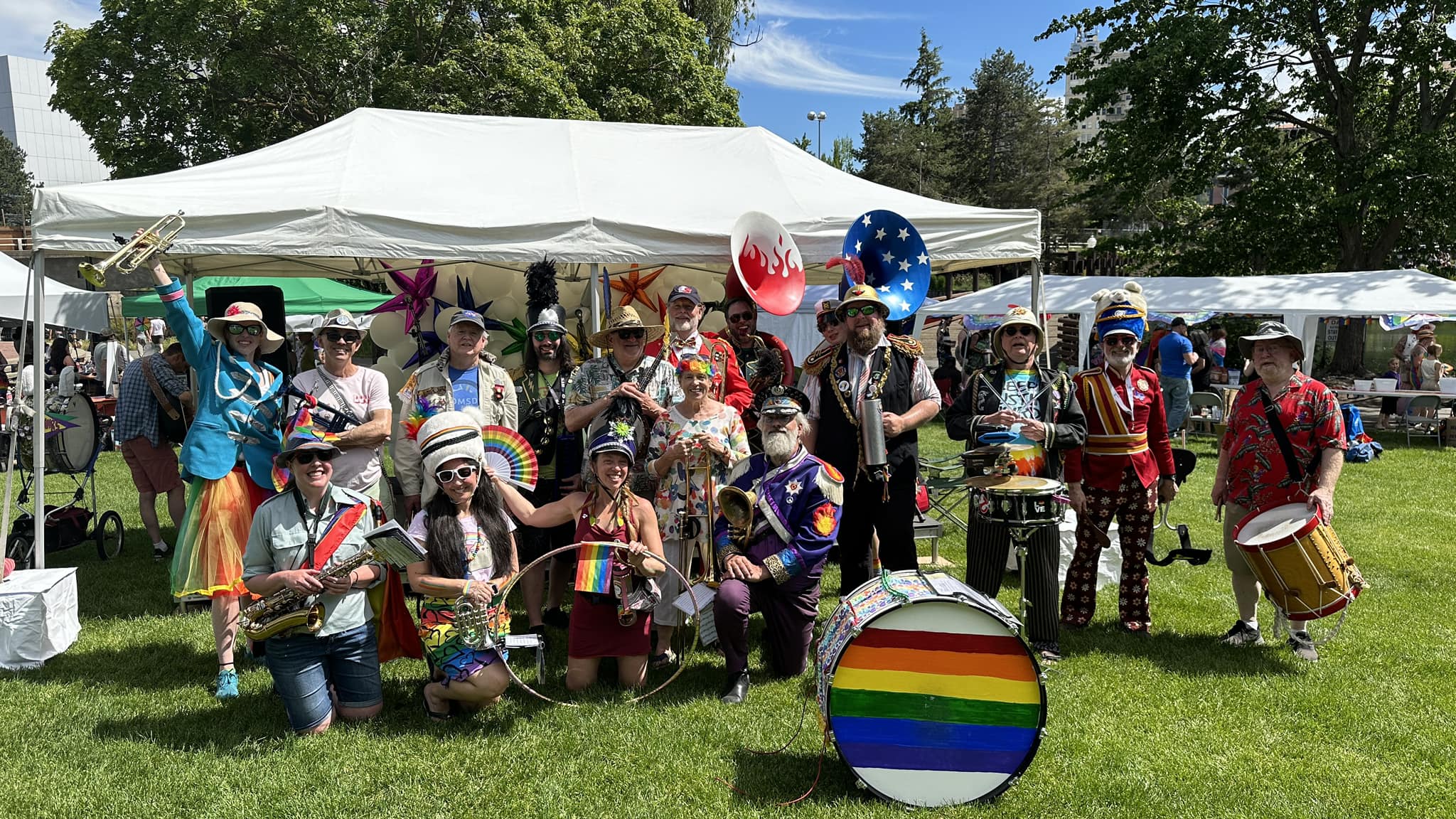 A community marching band, the P-Jammers, or PJAMRS (Peace and Justice Activist Musical Rascals of Spokane) are part of the international HONK! movement (See honkfest.org for more info). As such, membership is open to musicians of all levels and people who want to find a positive way to plug in with an emphasis on fun and doing the right thing. The PJAMRS are a multiple award winning (1st place in Southeast Spokane County Fair, 1st Place at Bloomsday 2024), and official Bloomsday band, that play at public celebrations, marches and rallies, or just for the heck of it. If you are interested in joining, just reach out to us on our Facebook page!